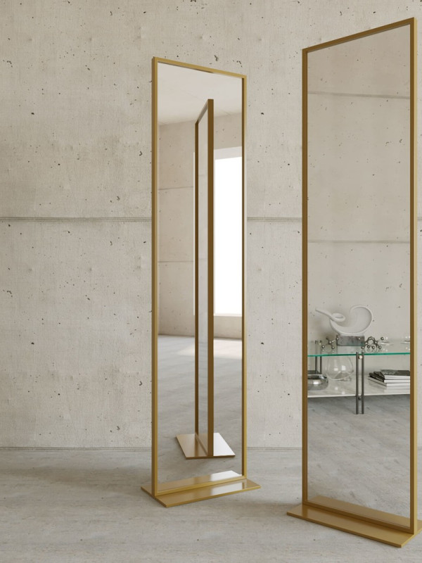 Дизайнерское напольное одностороннее зеркало Glass Memory Ablestar в металлической раме золотого цвета в Черногорске